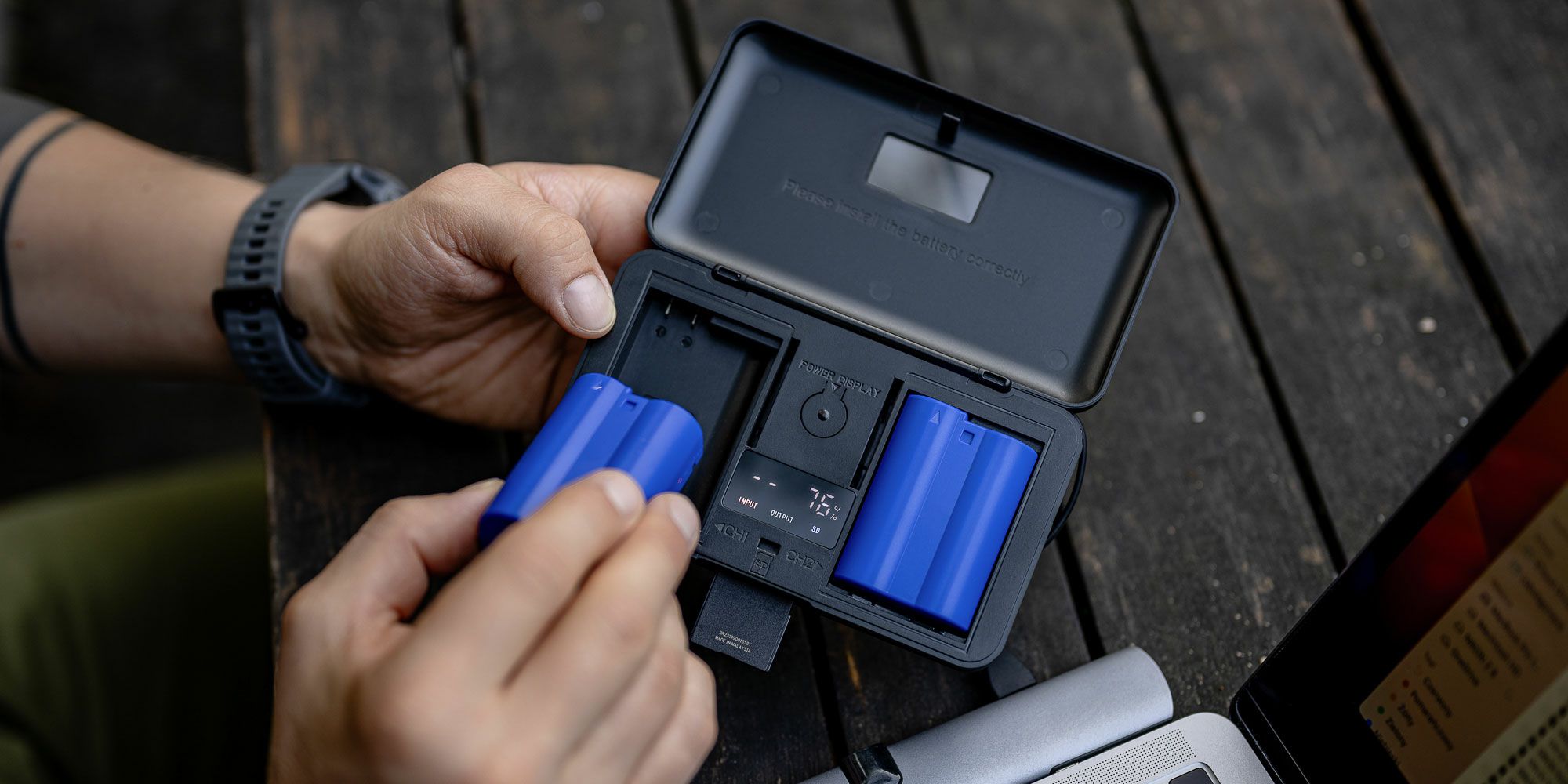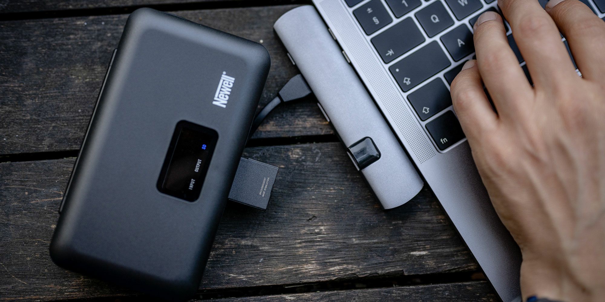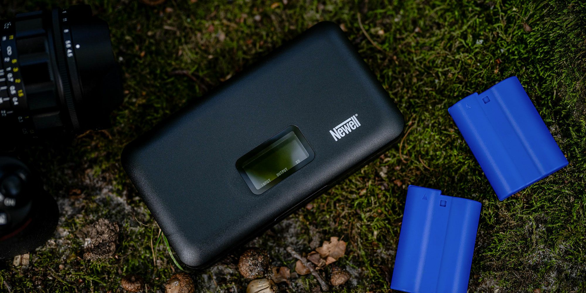 Newell LCD dual-channel charger with power bank and SD card reader for NP-FW50 batteries