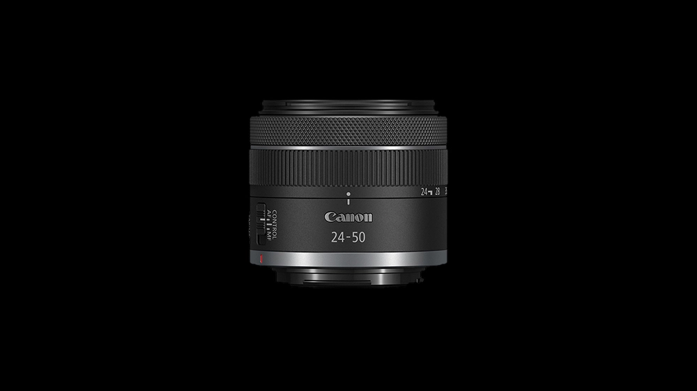 RF 24-50mm široki do normalni zum objektiv lagana je standardna alternativa za zumiranje za fotoaparate punog formata s maksimalnim otvorom blende f/4,5-6,3 s optičkom stabilizacijom slike. Objektiv ima dva asferična elementa i Canon Super Spectra premaz za smanjenje "ghostinga" i odbljeska. Koračni motor za fokusiranje (STM) omogućuje gladak, tih autofokus pri snimanju videa. Na senzorima slike veličine APS-C, objektiv ima približno ekvivalentnu pokrivenost od 38-80 mm.