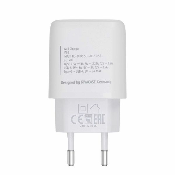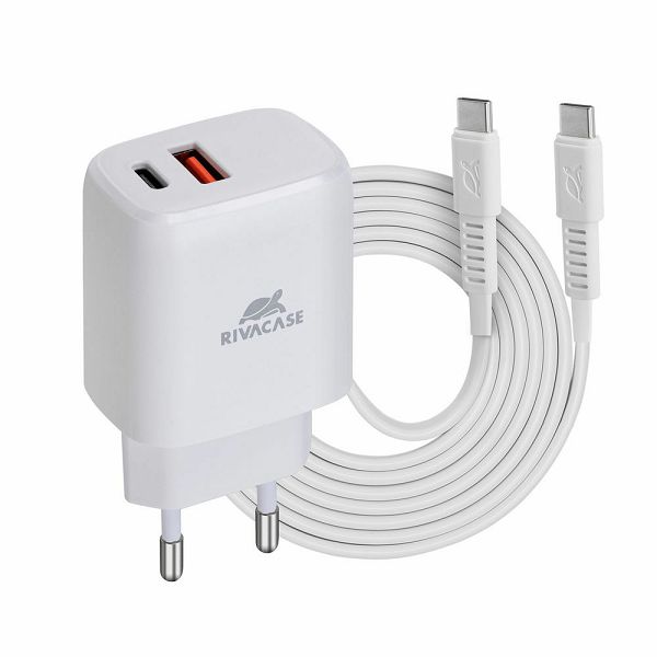 RivaPower Punjač zidni PS4192 WD4 White 3A/20W PD/QC 3.0/ 1xUSB-C/ 1xUSB-A + kabel USB-C to USB-C 1.2m