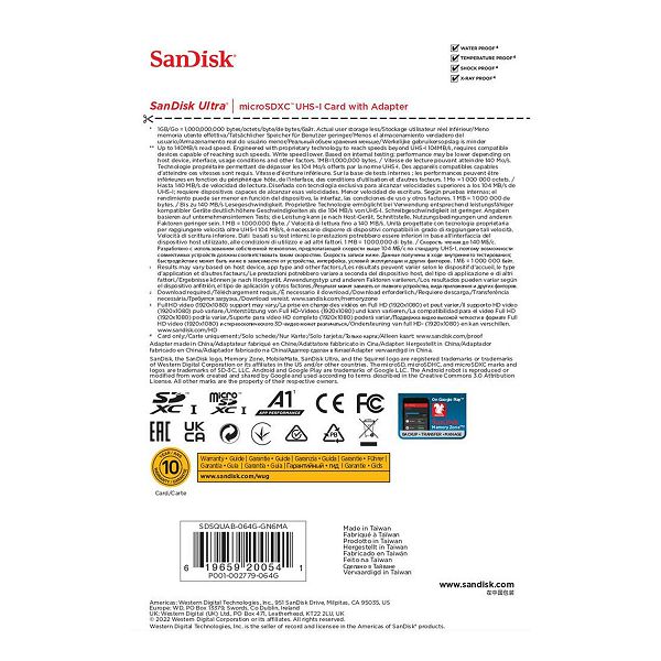 SanDisk Memorijska kartica SDSQUAB-064G-GN6MA Ultra microSDHC 64GB R140MB/s A1 Class 10 UHS-I + SD Adapter